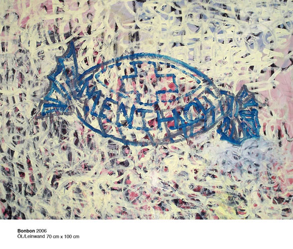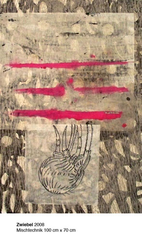 | Bonbon 2006 ÖL/Leinwand 70 cm x 100 cm |  | Zwiebel 2008 Mischtechnik 100 cm x 70 cm |